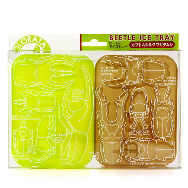 商品内容 『カブトムシ&クワガタムシ』の形のアイストレー 種類(10種):ヘラクレスオオカブト、コーカサスオオカブト、ゴホンヅノカブト、カブトムシ、サビイロカブト、ギラファノコギリクワガタ、オウゴンオニクワガタ、オオクワガタ、ニジイロクワガタ、ヨーロッパミヤマクワガタ 商品特性 電子レンジ、食洗機OK 耐熱温度230℃、耐冷温度ー20℃ 色 グリーン × ブラウン 【ご注意】トレーの色の組合せは2パターンありますが、どちらかの発送となります。