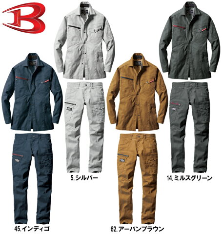 カラー 5.シルバー 14.ミルスグリーン 45.インディゴ 62.アーバンブラウン サイズ 長袖シャツ:S-5L カーゴパンツ:SS-7L 加工 ※ご要望の加工は下のバナーをクリックしてお求めくださいませ。
