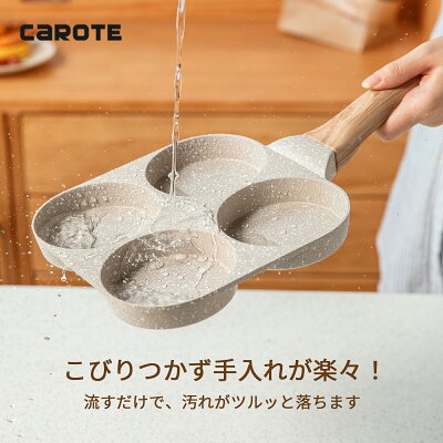 【9月1日まで予約発送、300円OFFクーポン配布中!】CAROTE仕切り付き 目玉焼きフライパン IH対応 4つ穴円形フライパン マルチパン 焦げ付きにくい洗いやすい 大判焼き器 お弁当 今川焼き パンケーキ 焼きおにぎり ベージュCosy(18.5*18.5cm)