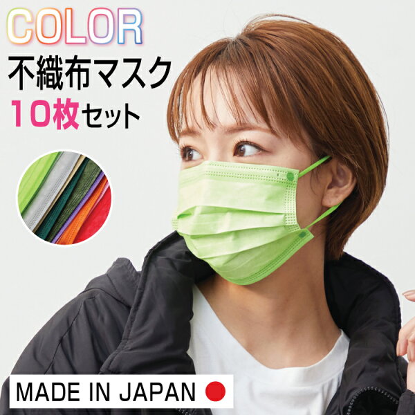 カテゴリ日本製,10枚セット,マスク,不織布マスク,カラーマスク,蛍光,個包装マスク,10枚入,使い捨てマスク,大人用,普通サイズ,三層構造,飛沫防止,花粉対策,防護マスク,男女兼用,女性用,大人用,男性用,中学生用,カラフル,ピンク,ベージュ,赤,オレンジ,おしゃれ,カジュアル