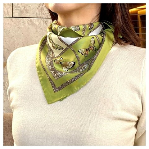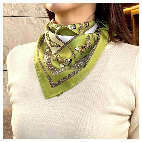 \30%OFF/ 【イタリア製 コモシルク スカーフ】バルサンティ スカーフ レディース 小判 正方形 53x53 春 夏 秋 冬 シルク100% 絹 バタフライ オリーブ Barsanti プレゼント ギフト 妻 母 祖母 誕生日 母の日 記念日 結婚記念日 送別 退職 お祝い ビジネス 仕事【送料無料】