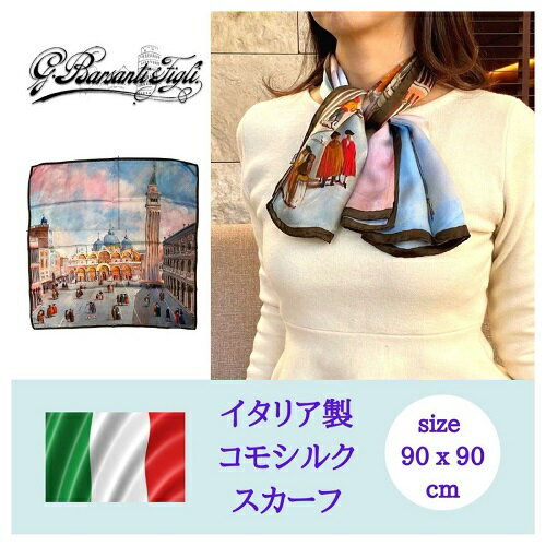 【コモシルクスカーフ】バルサンティ イタリア スカーフ シルク 大判 正方形 90x90 レディース 春 夏 秋 冬 シルク100% 絹 サンマルコ広場 Barsanti プレゼント ギフト 妻 母 祖母 誕生日 母の日 記念日 結婚記念日 送別 退職 お祝い ビジネス 仕事
