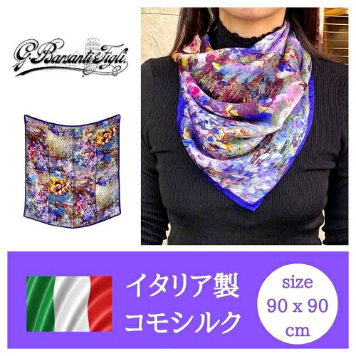 \30%OFF/ 【イタリア製 コモシルクスカーフ】バルサンティ イタリア スカーフ レディース コモ シルク 大判 正方形 90x90 春 夏 秋 冬 シルク100% 絹 モネバイオレット Barsanti プレゼント ギフト 妻 母 祖母 誕生日 記念日 結婚記念日 送別 退職 仕事【送料無料】