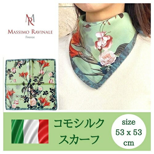 \20%OFF/ 【イタリア製 コモシルク スカーフ】マッシモ ラヴィナーレ イタリア スカーフ レディース コモ シルク 小判 正方形 53x53 春 夏 秋 冬 絹 バード オリーブ Massimo Ravinale プレゼント ギフト 妻 母 祖母 誕生日 記念日 結婚 送別 退職 お祝い【送料無料】