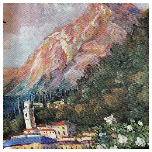 コモはシルク織物で名高い生産地として知られています ・透け感のある薄地の生地にプリントされた、まるで絵画のようなデザイン。