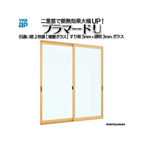 YKKap 引き違い窓 内窓 プラマードU 2枚建 複層ガラス すり板5mm+透明3mmガラス[制作範囲:幅1501〜2000mm×高1401〜1800mm]