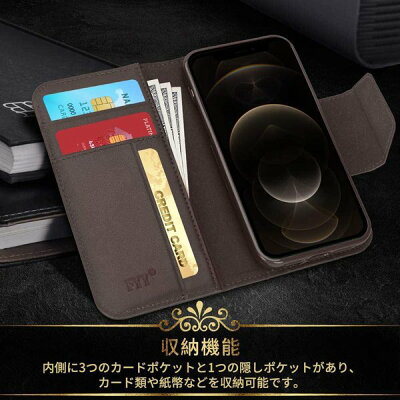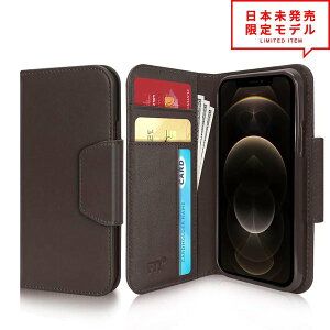 即納 iPhone 12/12Pro/12ProMax/12mini ケース カバー 手帳型 フリップケース 本革 レザー/ブラウン カード収納 抗菌加工 スタンド機能 日本未発売