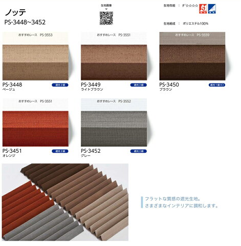 商品名タチカワブラインド プリーツスクリーンフィーユ コード操作 ノッテ備考透過性:遮光1〜2級生地備考:防炎 遮光生地重量目安:0.20※製作可能な幅:高さの比率は1:8以下。