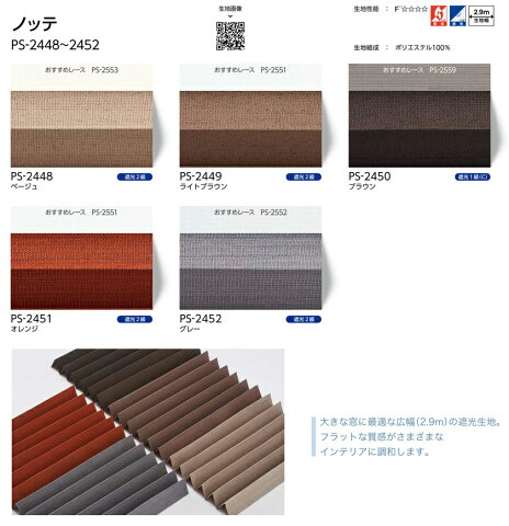 商品名タチカワブラインド プリーツスクリーンペルレ ペア おすすめペア コード操作 レース:エテルノ(PS-2551〜2561)との組み合わせ ノッテ備考透過性:遮光1〜2級生地備考:防炎 遮光 2.9m生地幅生地重量目安:0.20※製作可能な幅:高さの比率は1:8以下。