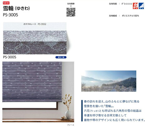 商品名タチカワブラインド プリーツスクリーンフィーユ チェーン操作 雪輪(ゆきわ)備考透過性:遮光2級生地備考:防炎 遮光生地重量目安:0.25※価格表の背景がブルーの範囲は面積4.5m2以下での製作。