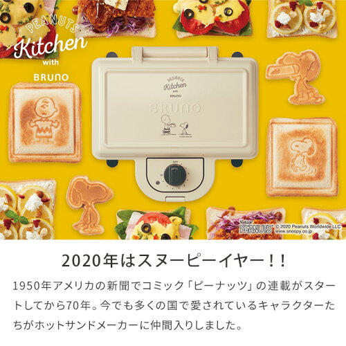 【p10】BRUNO PEANUTS ホットサンドメーカー ダブル (スヌーピー キャラクター 耳まで) スヌーピー好き必見! 耳までおいしいホットサンド いつもの朝食が華やかに!スヌーピーとその仲間のイラストの焼き目が付いたホットサンドが簡単に作れます。