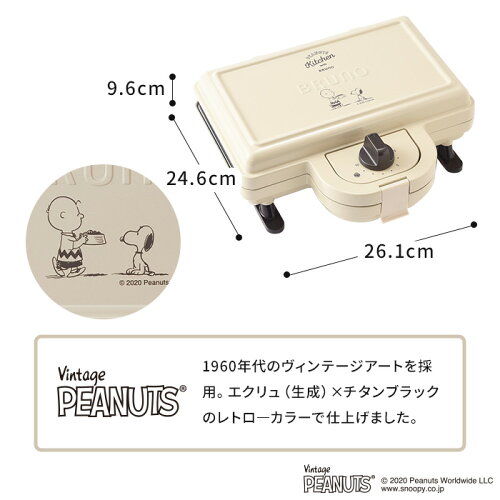 ホットサンドメーカー ダブル ブルーノ BRUNO スヌーピー BOE0698-ECRU マルチサンドメーカー グリルプレート 耳まで焼ける ギフト プレゼント チャーリー・ブラウン 食パン トースト トースター お菓子づくり カフェ風 かわいい