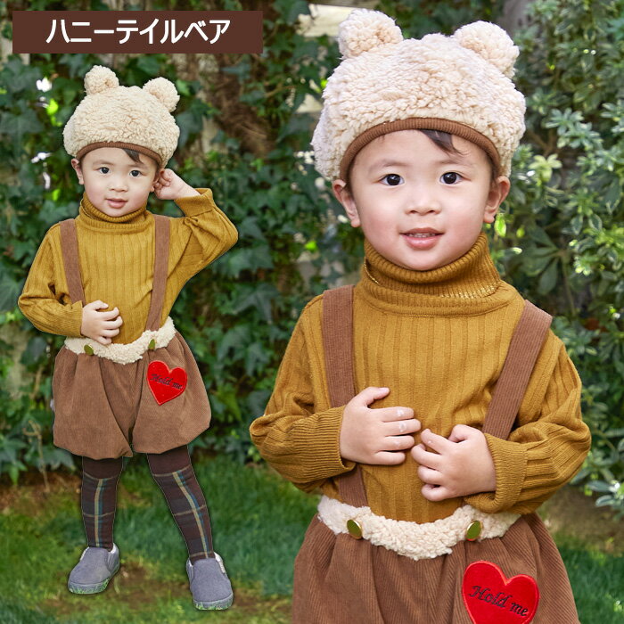 ハニーテイル ベア ベビー テディベア クマ耳 カチューシャ ブラウン クマ 熊 くま 被りもの 吊り紐付き パンツ オーバーオール つりひもパンツ 紐付きパンツ 紐 ベビー服 赤ちゃん 出産祝い キッズ 衣装 コスチューム ハロウィン コスプレ 仮装 男の子 女の子 80 s-cs-9a544