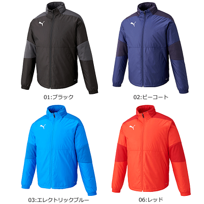 ・wind CELL:冷たい風の侵入を防ぐ高機能防風素材 ・サイドにスリットポケット×2 ・ショルダー&スリーブのアクション切替 ・シングルジップアップクロージャー ・右胸にPUMAキャットロゴ ■メーカー希望小売価格:11,000円+税 ■カラー: 01:ブラック 02:ピーコート 03:エレクトリックブルー 04:レッド ■素材:ポリエステル100% 中綿ポリエステル100% ■生産国:ベトナム製 ■上下セットのパンツはこちら(657123) ※当店とメーカーの在庫を合わせた数を表示しておりますので 稀に欠品する場合もございます。