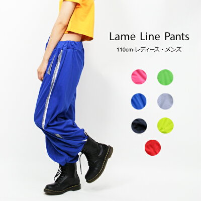 キッズ ダンス 衣装 ヒップホップ パンツ/ラメライン ジャージ CJPE-01[子供 キッズダンス 衣装 ガールズ ダンスパンツ ダボパンツ 軽い 韓国 派手 HIPHOP よさこい ジュニア ジャズダンス ストリートダンス 蛍光 黒 白 黄色 グリーン イエロー 青 赤 ピンク]