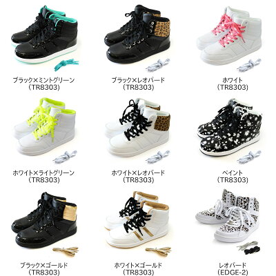 ハイカット レースアップ スニーカーEDGEエッジ オリジナル レディース ダンス ヒップホップダンスシューズ ヒョウ柄 アニマル カジュアル バイカラー 白 黒 替え紐 ペイント 散歩