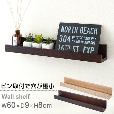 【ポイント5倍8/14〜15限定】壁 棚 壁 本棚 ウォールシェルフ おしゃれ 壁掛け 賃貸 ウォールラック 壁面収納棚 傷つけない 壁掛けシェルフ 北欧 ウッドシェルフ 幅60 壁掛け飾り棚 ナチュラル ブラウン nkb-m60