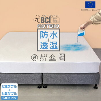 マットレスプロテクター セミダブル2台用サイズ セミダブル+セミダブル(シングル+ダブル)(240×195cm) スペイン製 防水 通気性 透湿性 水をはじく COTBIO ベターコットン マットレスカバー コトバイオ コットバイオ