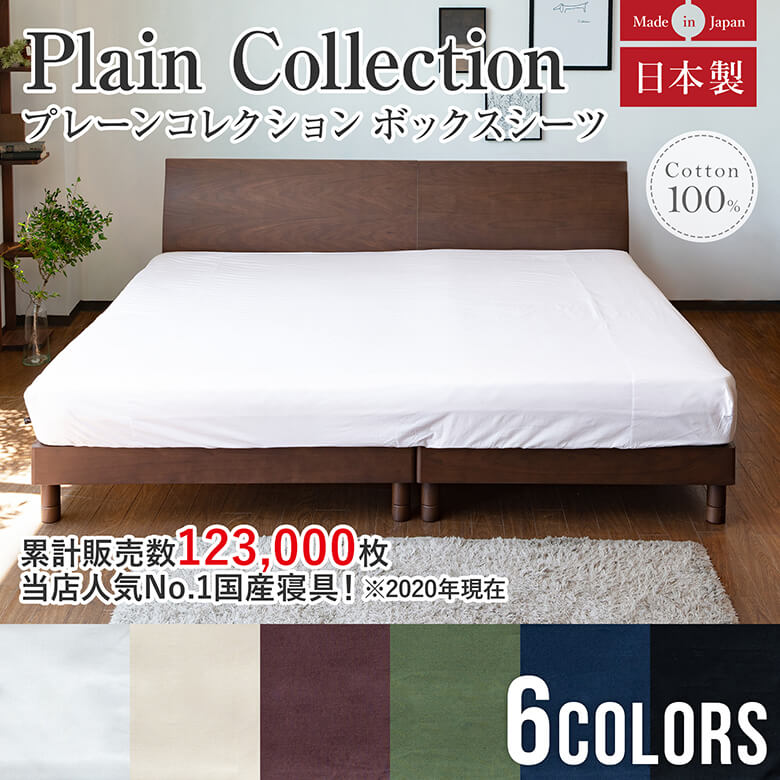 【シングル+セミダブル(220cm幅)】6色展開 プレーンコレクション【ベッド用ボックスシーツ】(220×200×25cm) ファミリーサイズ 日本製 国産 綿100% ゴム留めマットレスカバー ボックスシーツ 2台用サイズ シングル+セミダブル