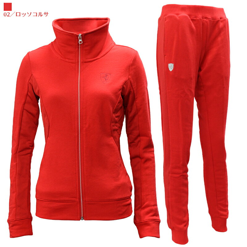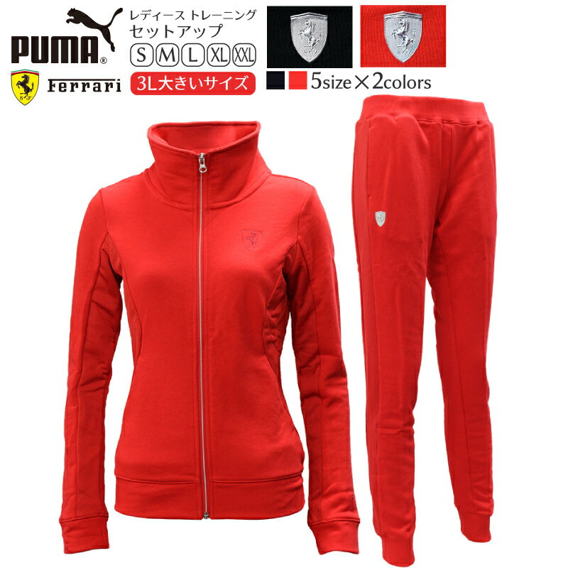 プーマ レディース セットアップ PUMA 569543 569544 FERRARI トレーニング セットアップ | 春 夏 秋 モータースポーツ フェラーリ スポーツ ジム ランニング ヨガ パジャマ ルームウェア 上品 大きいサイズ BIG SIZE 刺繍 ロゴ 車 おしゃれ 3L XXL メッシュ 赤 黒 シンプル